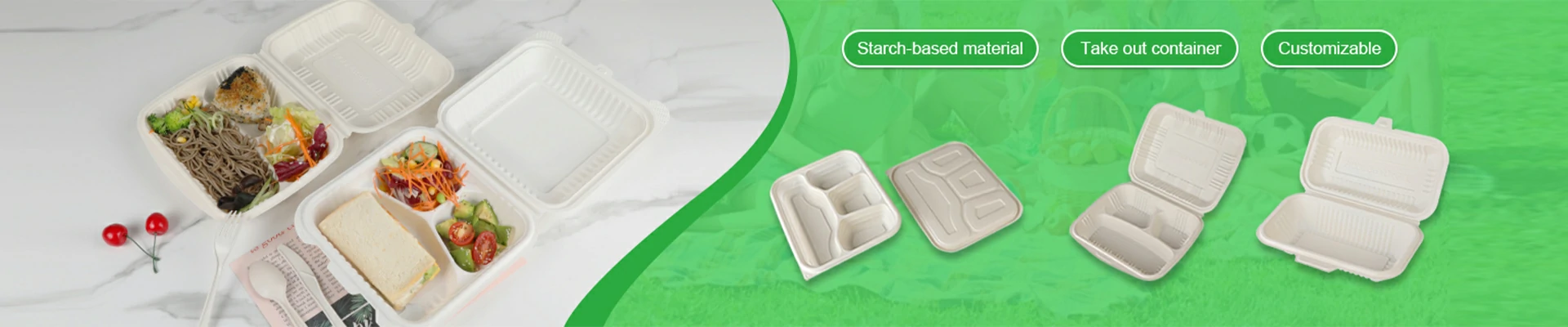 Our major material source is corn powder, which is a newly developed degradable and environmental way to produce the disposable tableware. The products will degrade after using with no pollution during the manufacturing process. It is one of the best environmental tableware for supermarkets, restaurants and the relevant service providing companies, taking the place of the traditional expanded products. Our main products include lunch box, plate and soup bowl. Besides the standard products, we can also do customized items as customers’ requirements. The products are non-poisonous, innocuous, no objectionable odor. It can be put into the microwave oven directly. It is an insurance of healthy lunch.