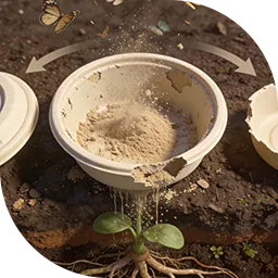Made from renewable cornstarch, our products biodegrade under composting conditions, returning to the soil and closing the ecological loop.
