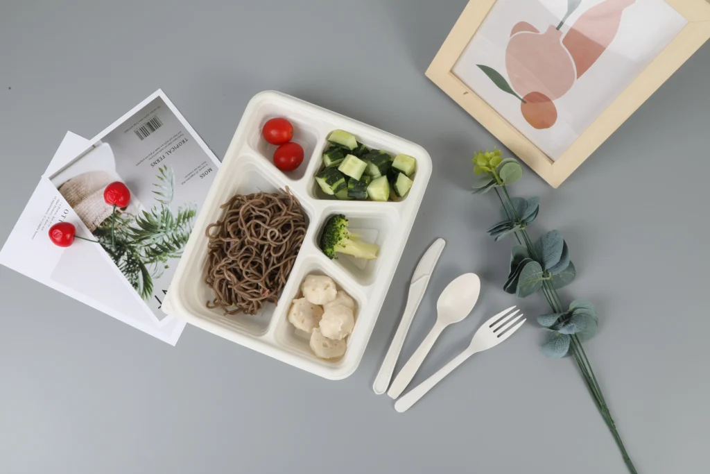 Compared to sugarcane (absorbs moisture) and rice husk (poor production environment), cornstarch is more stable and cleaner, making it ideal for high-end catering.