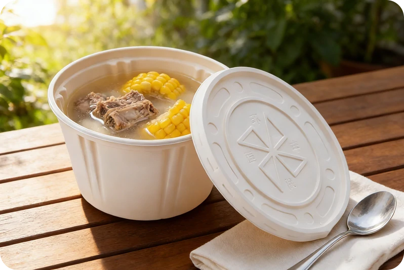 Disposable Biodegradable Cornstarch Soup Bowl Core Material: Proprietary Cornstarch Base + PPT Plastic Composite Technology